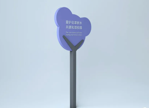 校園環(huán)境標(biāo)識(shí)四級(jí)導(dǎo)向可以作為導(dǎo)向,即門牌/設(shè)施牌/窗口牌/桌牌/樹木牌、草地牌(外環(huán)境)。其中設(shè)施牌主要指的是公共服務(wù)設(shè)施中的標(biāo)牌,如洗手間、投幣飲料機(jī)等,窗口牌則主要針對(duì)校內(nèi)銀行、學(xué)生食堂、公共浴室等空間內(nèi)部的功能性指示牌。至于草地牌,作為校園環(huán)境景觀的一個(gè)重要組成部分,不必完全嚴(yán)格按照?qǐng)@林系統(tǒng)公共標(biāo)志實(shí)施規(guī)程執(zhí)行,可以設(shè)計(jì)有校園特色的、溫馨的標(biāo)識(shí),無論從造型、語言還是色彩均可如此。樹木牌在校園樹種層次較多的情況下,非常有必要設(shè)置,生活中不乏這樣的實(shí)例,在一個(gè)環(huán)境中生活了數(shù)年,對(duì)環(huán)境中的樹木花草知曉名稱習(xí)性的人少之又少,在學(xué)校這樣的環(huán)境中,有必要使學(xué)生了解樹木花草的名稱、產(chǎn)地、習(xí)性等,既為環(huán)境添色又增長了知識(shí)。